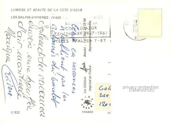 Hyeres_les_Palmiers Les Salins Port Hyeres_les_Palmiers postalisch gelaufen 1987 Erhaltung siehe scans [LiesaD40] LiesID40