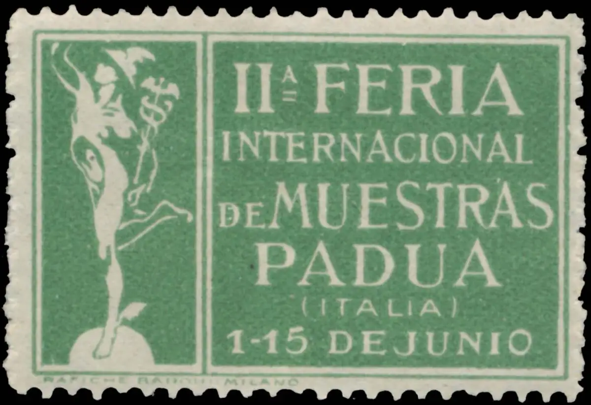 IIe Internationale Mustermesse, Padua, Padva, Italien, grün, Größe/Zustand: 2x4 , guter Zustand, Original alte Reklamemarke die seinerzeit für die Werbung benutzt wurde