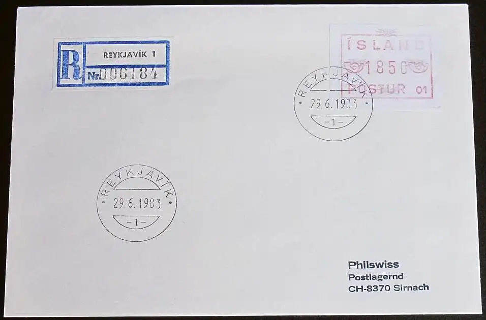 ISLAND 1983 Mi-Nr. ATM 1 Automatenmarke Einschreiben FDC