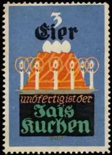 3 Eier und fertig ist der Iais Kuchen, Größe/Zustand: 5x4 , guter Zustand, Original alte Reklamemarke die seinerzeit für die Werbung benutzt wurde