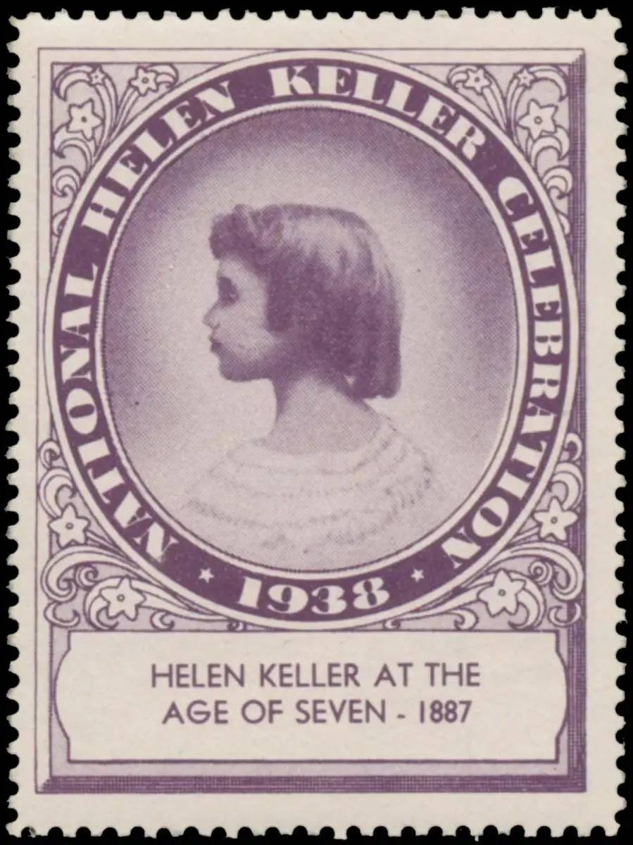 Helen Keller Feier, Blindheit, Taubheit, Größe/Zustand: 5x4 , guter Zustand, Original alte Reklamemarke die seinerzeit für die Werbung benutzt wurde