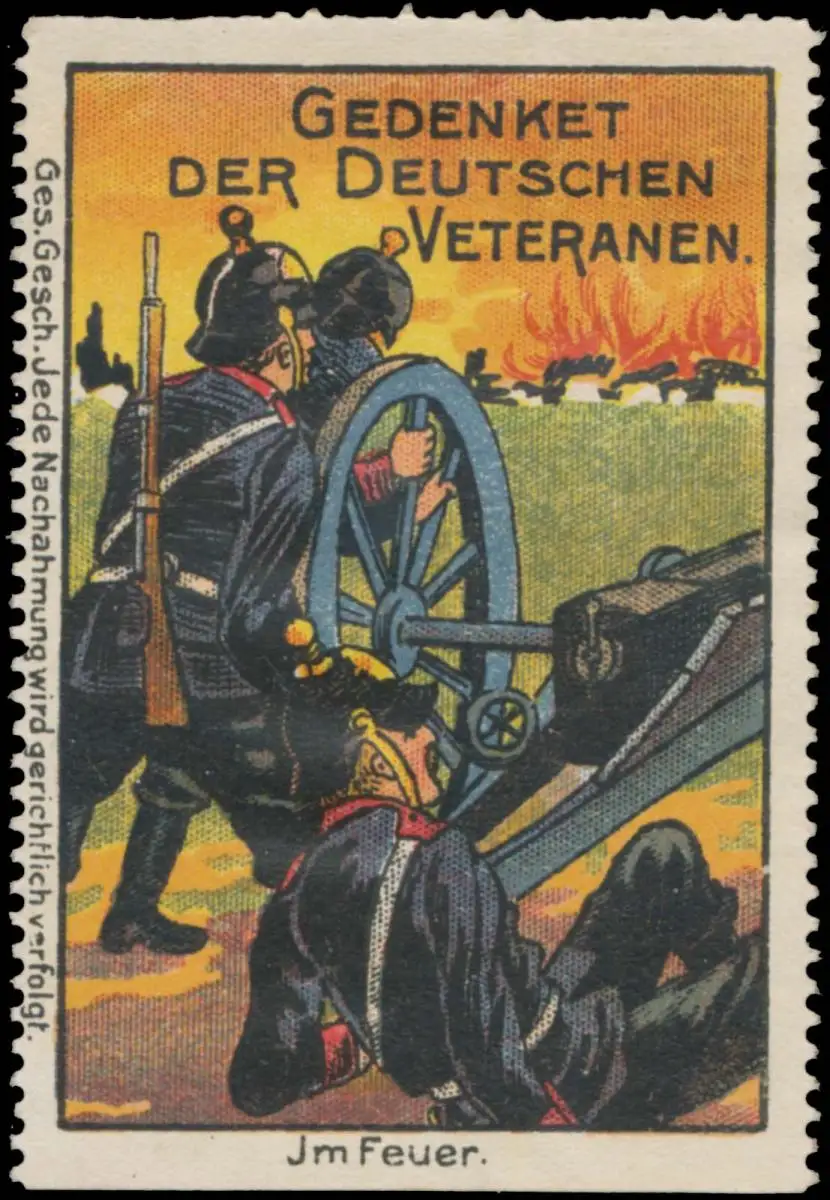 Gedenket der Deutschen Veteranen. Propagandamarke, Erster Weltkrieg, Größe/Zustand: 7x5 , guter Zustand, Original alte Reklamemarke die seinerzeit für die Werbung benutzt wurde