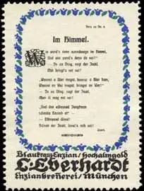 Vers zu Nr. 6, Blaukranz Enzian / Hochalmgold L. Eberhardt Enzianbrennerei, Größe/Zustand: 6x4 , guter Zustand, Original alte Reklamemarke die seinerzeit für die Werbung benutzt wurde