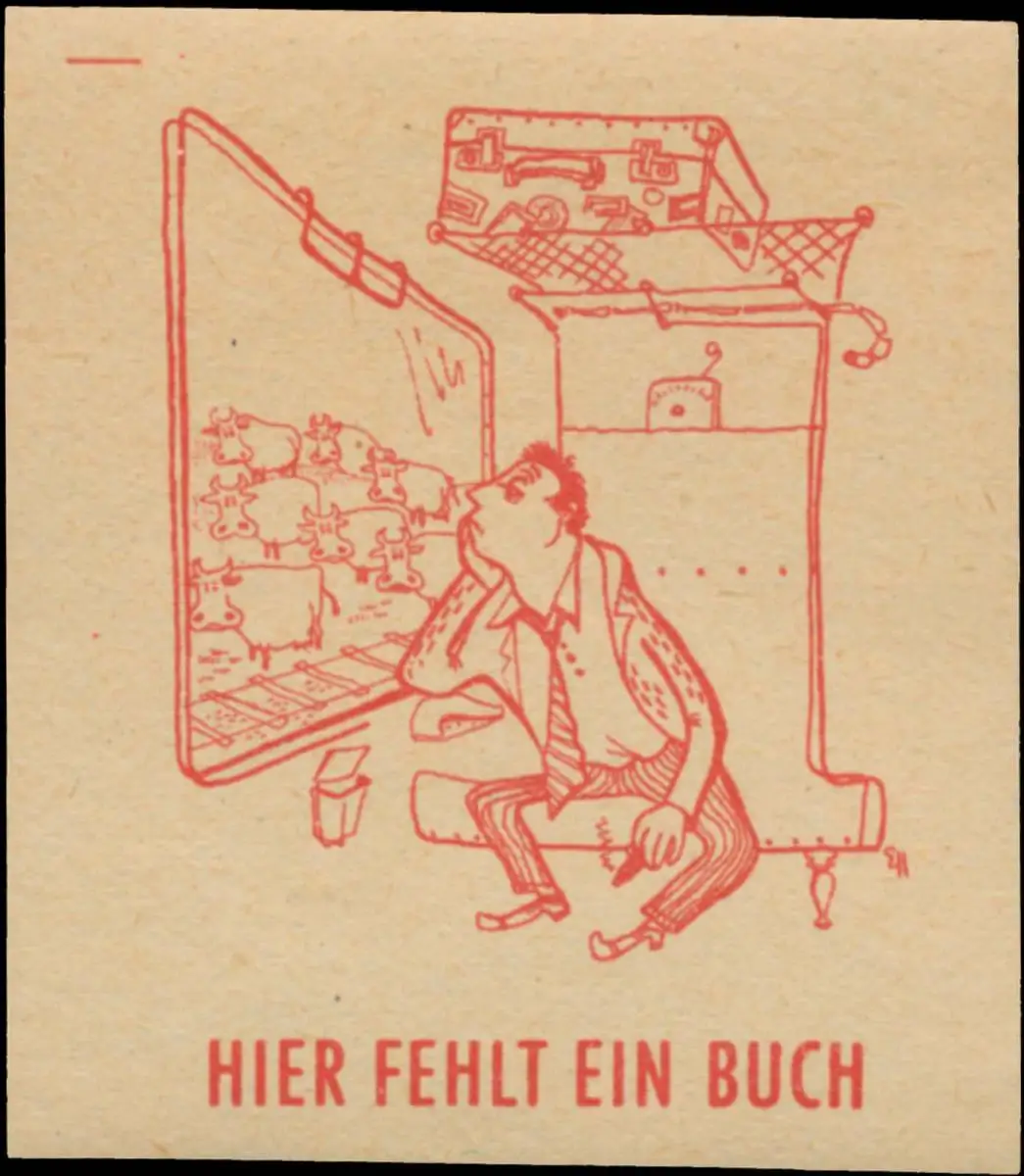 Hier fehlt ein Buch, Buchhandel, Größe/Zustand: 5x4 , guter Zustand, Original alte Reklamemarke die seinerzeit für die Werbung benutzt wurde