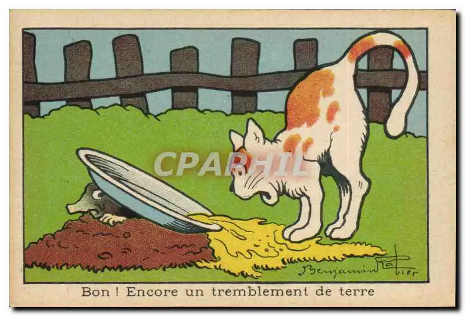 Image Benjamin Rabier Bon Encore un trmeblement de terre Chat