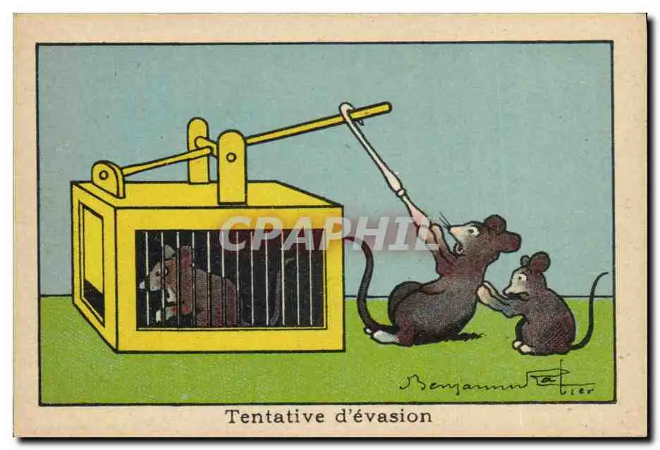 Image Benjamin Rabier Tentative d'evasion Souris