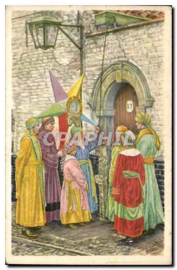Image Folklore Belge Le bon Chocolat Belge Courtrai Le Sterreman avec son etoile multicolore va quet