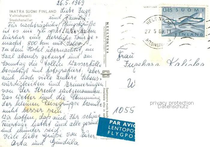 Imatra Stadshotellet Restaurant Wildwasser Imatra postalisch gelaufen 1969 Erhaltung siehe scans [FriedD77] Frierer