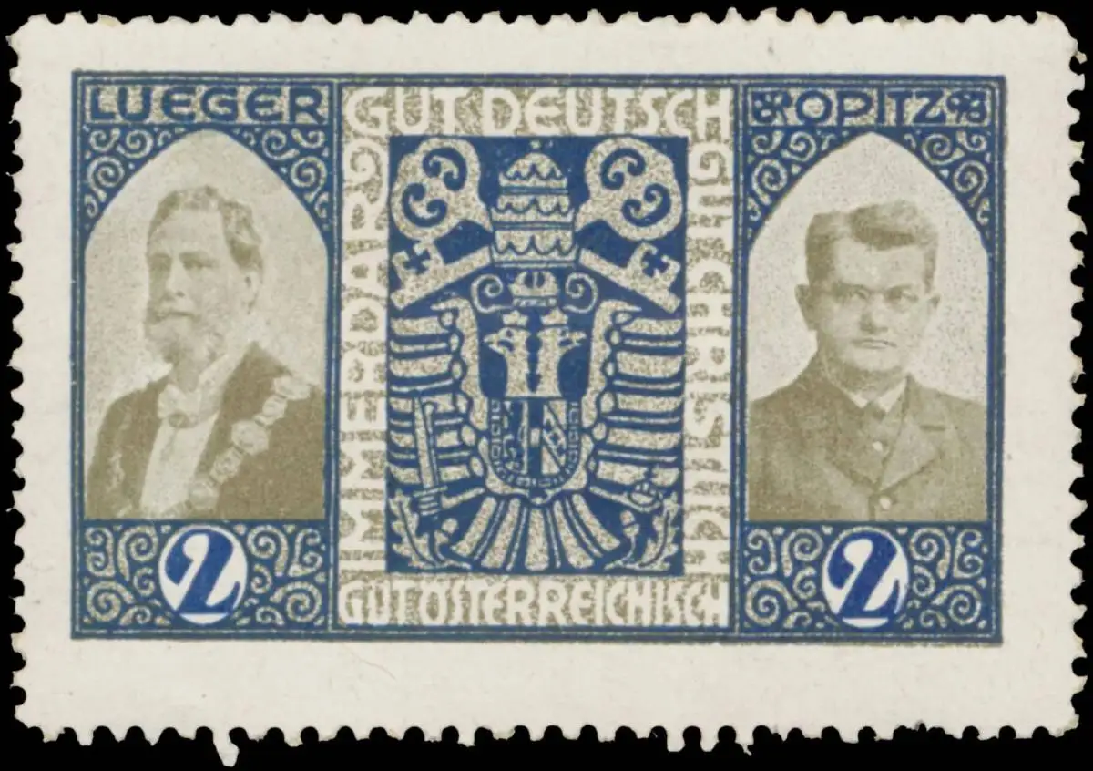 Gut christlich, gut österreichisch, Karl Lueger, Opitz, Motiv K, Spendenmarke, Wehrschatzmarke, Größe/Zustand: 4x5 , guter Zustand, Original alte Reklamemarke die seinerzeit für die Werbung benutzt wurde