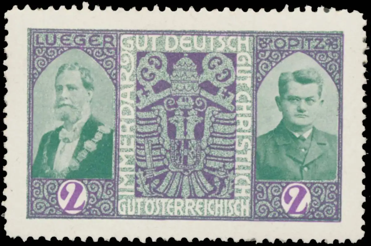 Gut christlich, gut österreichisch, Karl Lueger, Opitz, Motiv J, Spendenmarke, Wehrschatzmarke, Größe/Zustand: 4x5 , guter Zustand, Original alte Reklamemarke die seinerzeit für die Werbung benutzt wurde