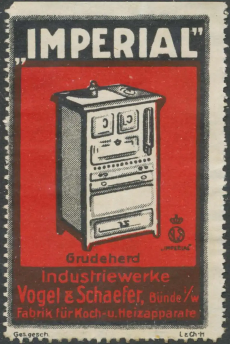 Fabrik für Koch- und Heizapparate, Größe/Zustand: 6x4 , guter Zustand, Original alte Reklamemarke die seinerzeit für die Werbung benutzt wurde