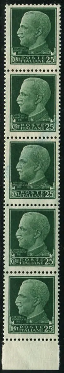 Imperiale Cent. 25 Sorten Vollgummi - Imperial Cent. 25 n. 248e Streifen mit fünf B. von f., davon drei Exemplare auf zusammengesetztem Papier gedruckt sind - Selten - Kat. euro 3.000 Code 269/11