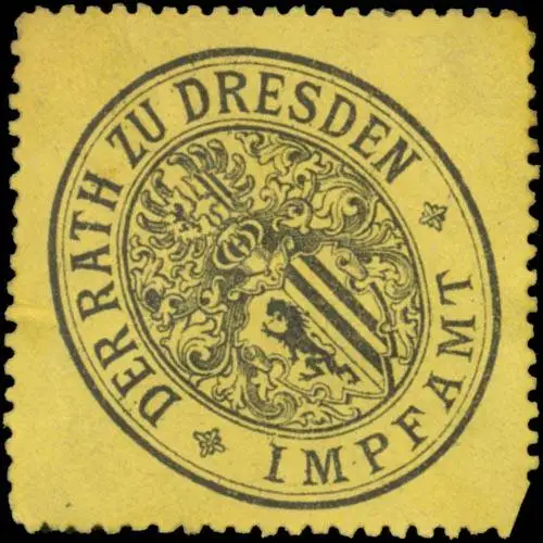 Der Rath zu Dresden, gelb, schwarz, impfen, Medzin, Größe/Zustand: 4x4 , leicht beschädigt, Original Verschluss-Siegelmarke aus Papier welche früher von Behörden, Firmen etc. zum Versiegeln der Briefe benutzt wurden