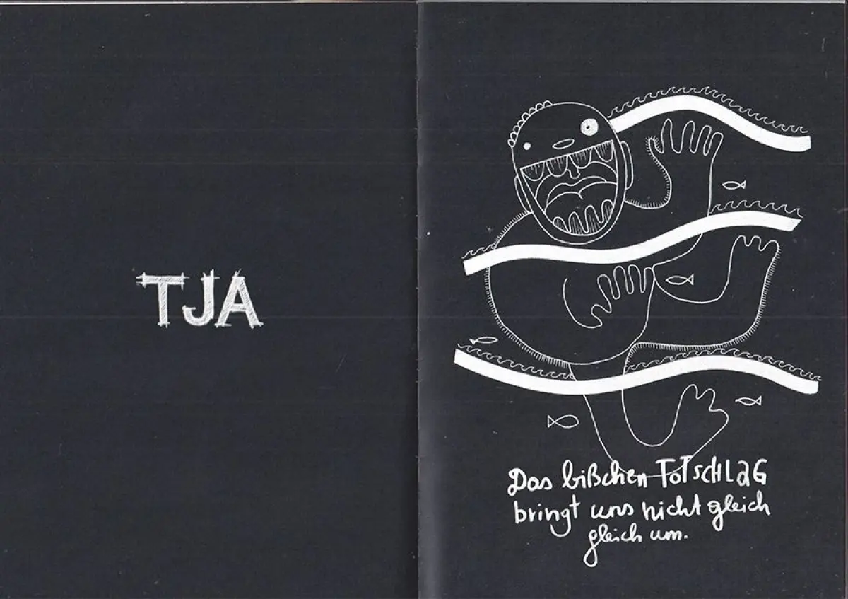 Bemerkungen: Künstlerbuch mit Graphic Novels der Künstlerin Mimu Merz. Einbandtitel in Spiegelschrift. Eines von 100 num. Exemplaren. "Taschenbuch anlässlich eines Abends für mimi im Rauchsalon im ehemaligen Cafe der Secession, Wien".