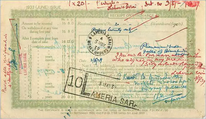 Inde India Post Office Cash Certificate