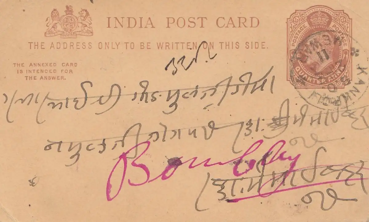 sehr schöner und seltener Bahnpostbeleg aus Britisch Indien F4 OUT / SET N°1 mit Mischfrankatur King Edward / King George 1912 nach nach Frankfurt am Main versandt. Ich bin sehr zufrieden, vielen Dank!