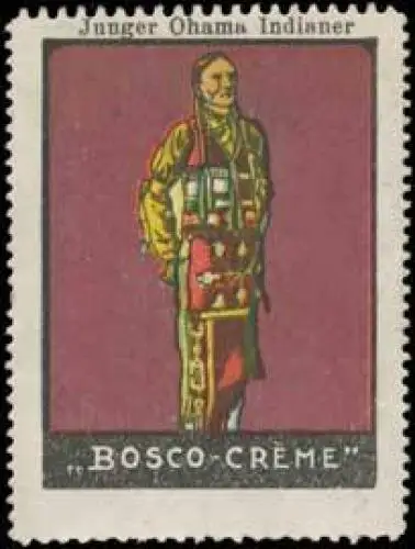 Junger Ohama Indianer, Bosco-Creme, Größe/Zustand: 6x4 , guter Zustand, Original alte Reklamemarke die seinerzeit für die Werbung benutzt wurde