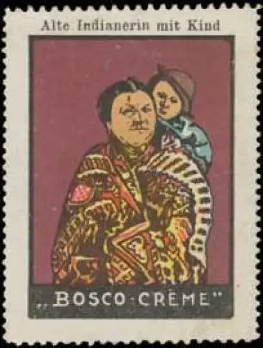 Alte Indianerin mit Kind, Bosco-Creme, Größe/Zustand: 5x4 , guter Zustand, Original alte Reklamemarke die seinerzeit für die Werbung benutzt wurde