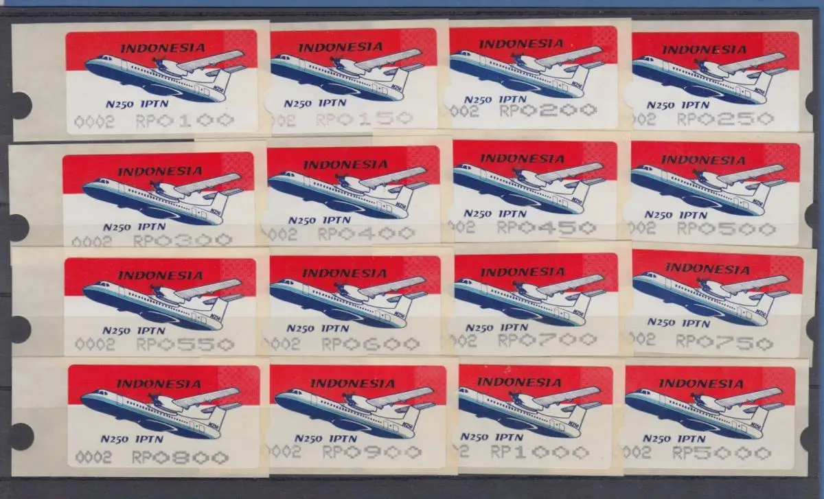 Indonesien ATM 2. Ausgabe 1996, Aut.Nr. 0003 großer Tastensatz 16 Werte ** RRR