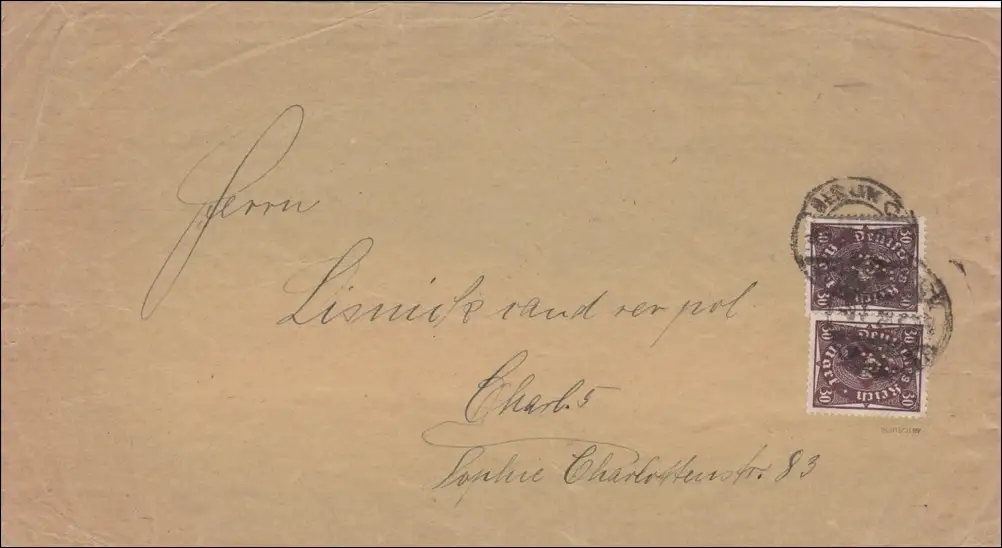 Inflation: Brief von Berlin nach Charlottenburg , Infla geprüft MiNr. 231 MeF