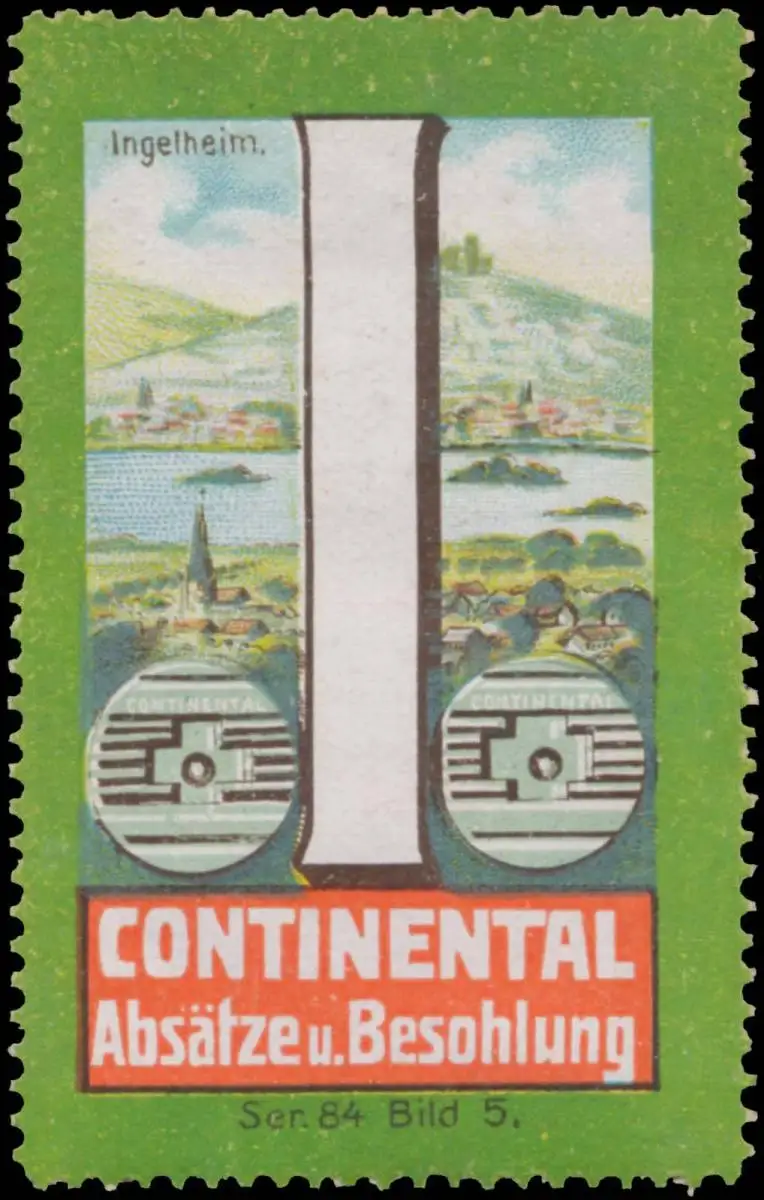 Continental - Absätze und Besohlung, Buchstaben-Serie 84, Bild 5, Größe/Zustand: 6x4 , guter Zustand, Original alte Reklamemarke die seinerzeit für die Werbung benutzt wurde