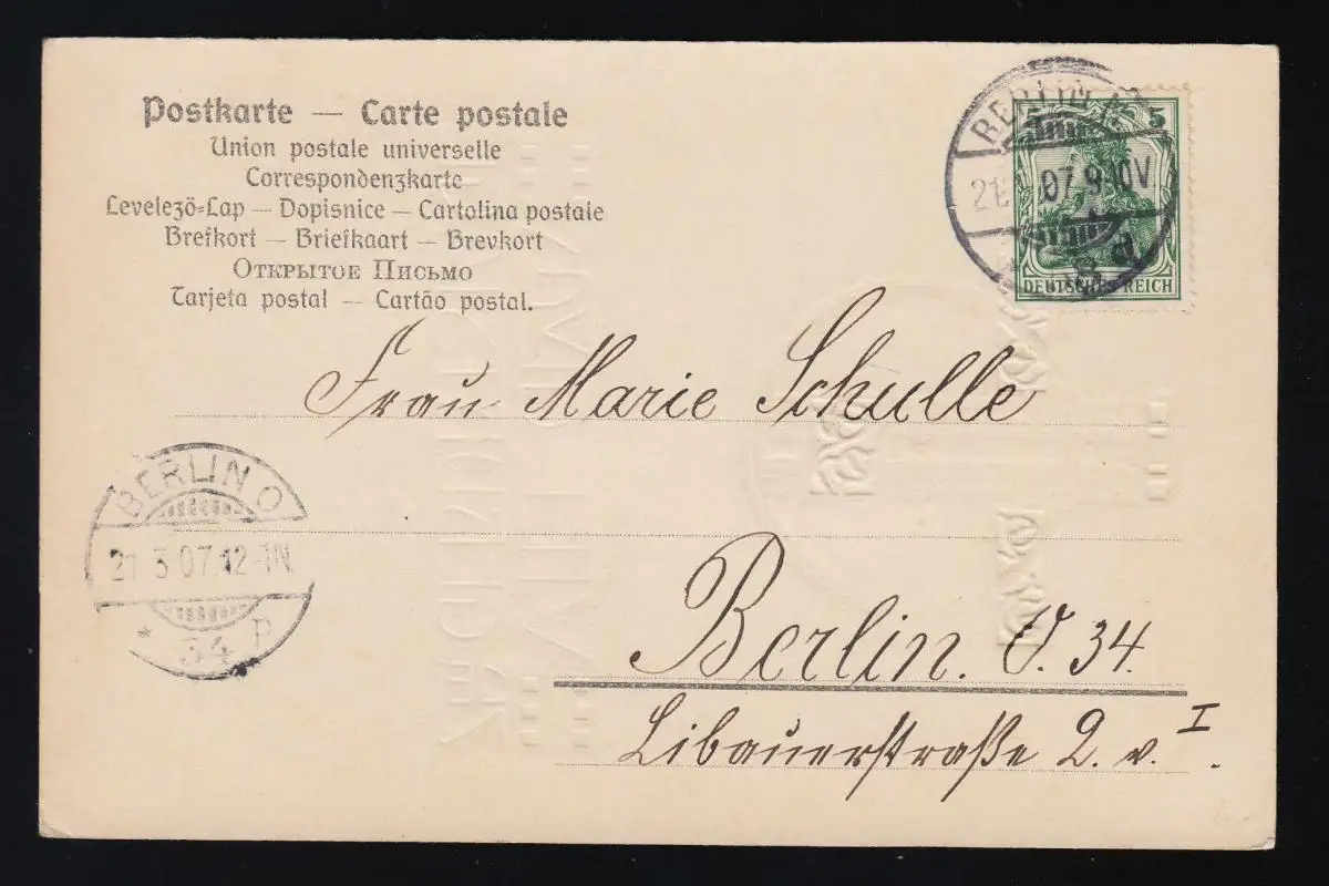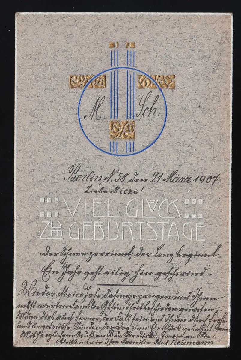 Initialen Gold Ornamente Linien Grafik Glück zum Geburtstag Berlin 21.3.1907