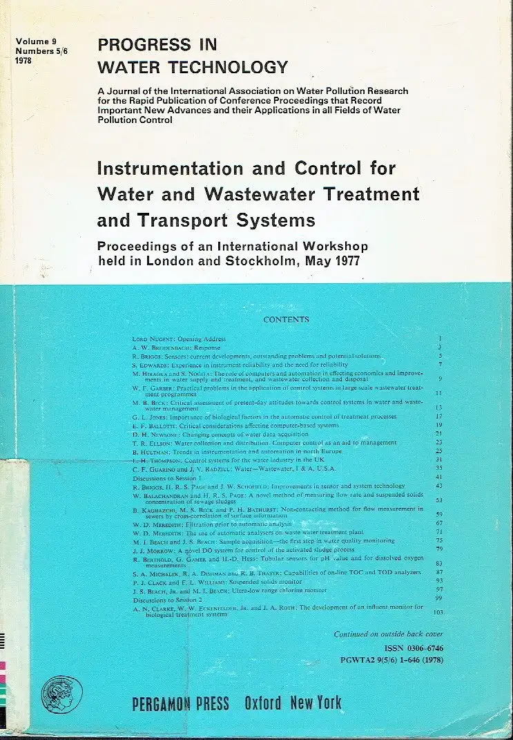 Instrumentation and Control for Water and Wastewater Treatment and Transport Systems Proceedings of an International Workshop held in London and Stockholm, May 1977.