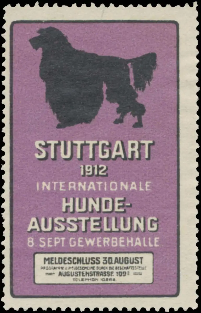 8. September Gewerbehalle, Geschäftsstelle Augustenstraße 109, Pudel, Hund, violett, Größe/Zustand: 6x4 , guter Zustand, Original alte Reklamemarke die seinerzeit für die Werbung benutzt wurde
