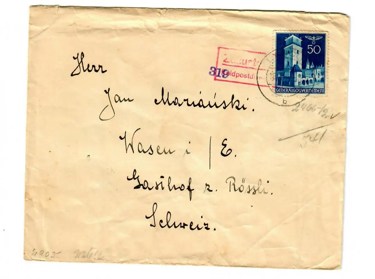 Interniertenpost GG: Brief portogerecht nach Wasen von Lancut, 2x Zensur
