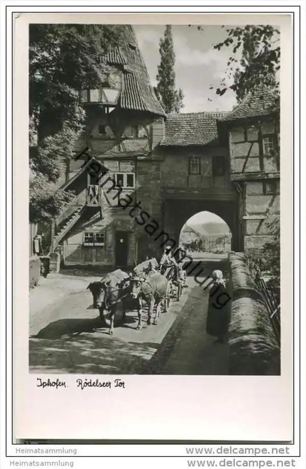 Iphofen - Rödelseer Tor - Ochengespann - Foto-AK (G24223) *