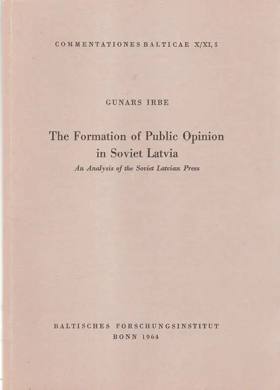 Irbe, Gunars: The Formation of Public Opinion in Soviet Latvia. An Analysis of the Soviet Latvian Press. (Commentationes Balticae X/XI, 5).