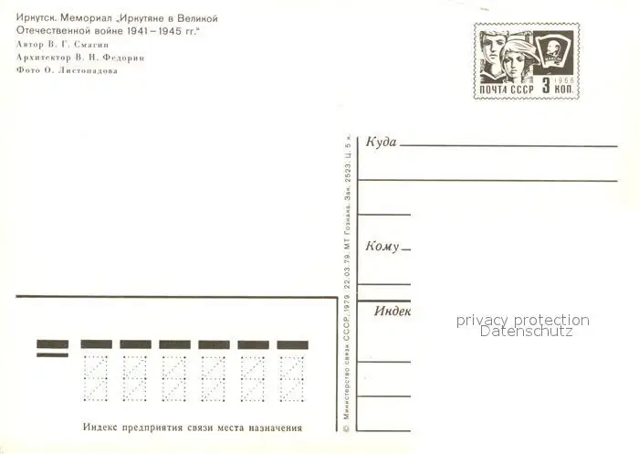 Irkutsk Memorial Velikoj Pobede Irkutsk postalisch nicht gelaufen nach 1965 Erhaltung siehe scans [DarjaD84] DarjID84