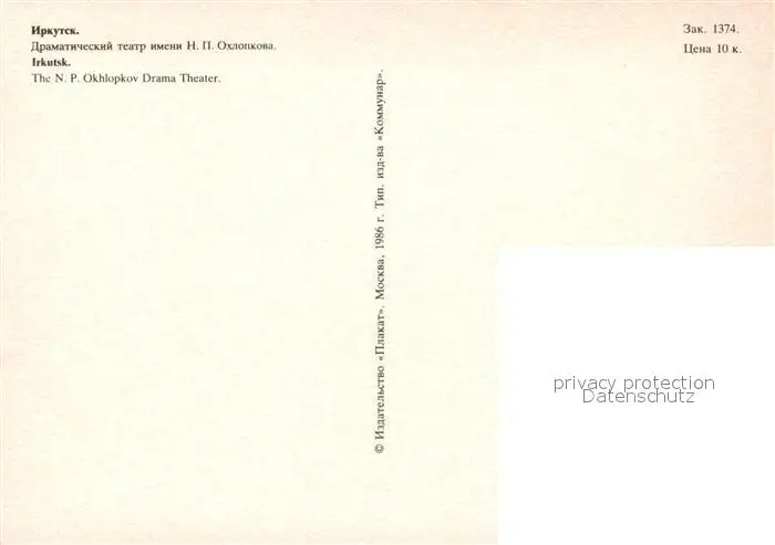Irkutsk Theater Irkutsk postalisch nicht gelaufen nach 1965 Erhaltung siehe scans [NatalD47] NataID47