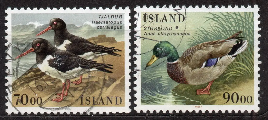 Island, Mi-Nr. 670 + 671 gest., Austernfischer + Stockente