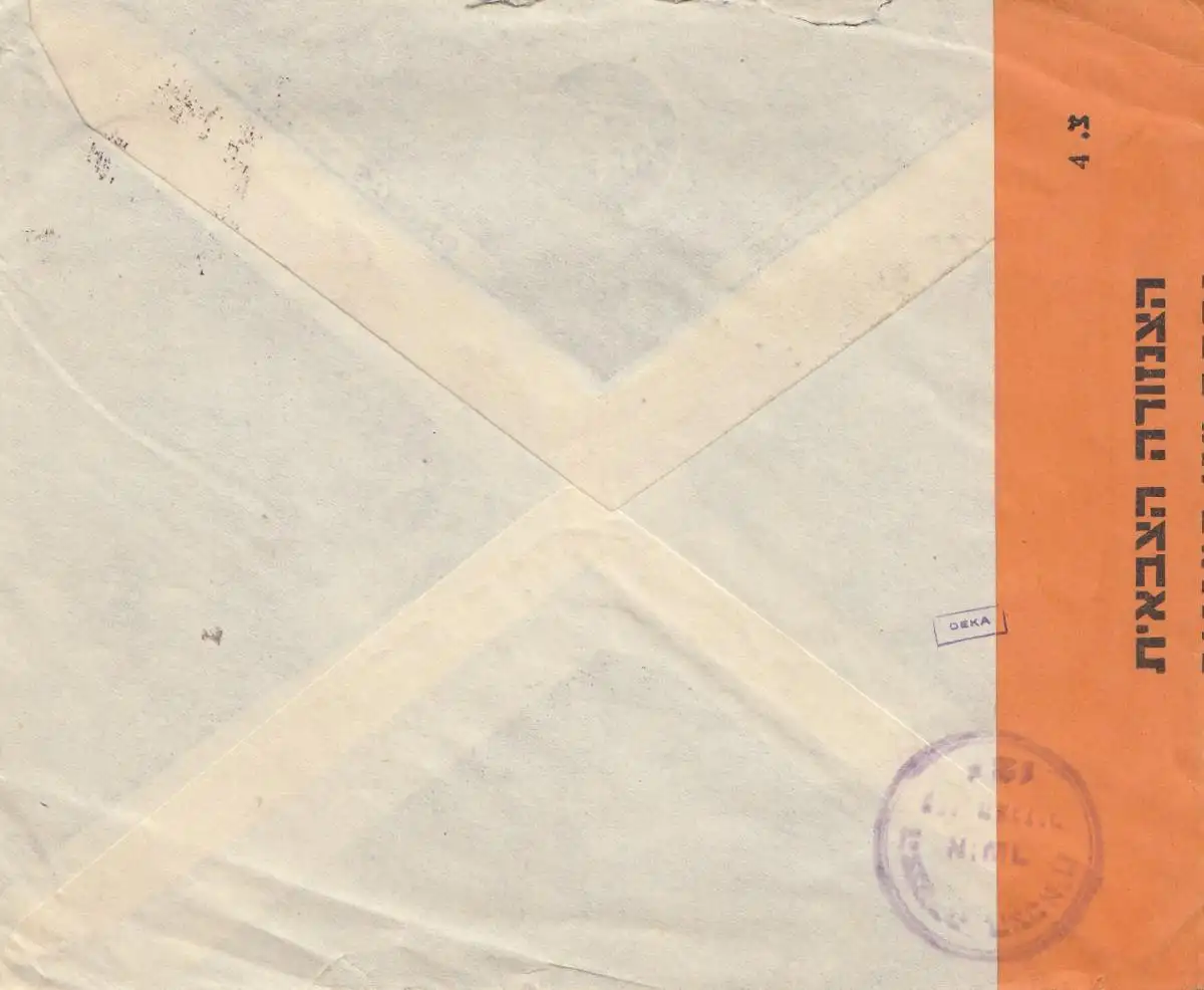 Israel 194x, air mail to Paris, censor