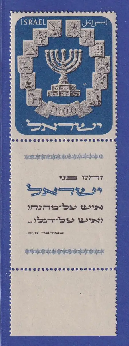 Israel 1952 Menora Mi.-Nr. 66 mit Full-Tab postfrisch **