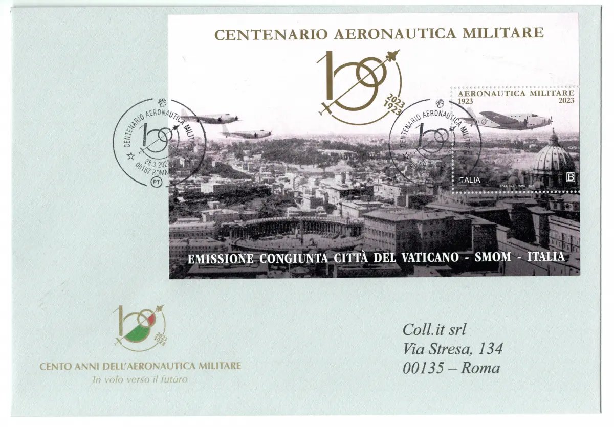 Italienbogen - Auf figürlichem Sonderstempelumschlag vom 28.3.2023 wahrer Tag des hundertjährigen Jubiläums der italienischen Luftwaffe - Selten
