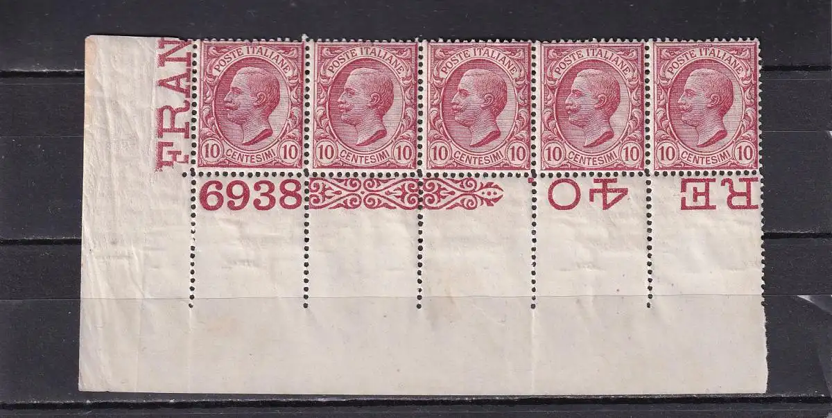 ITALIEN 1906 VITTORIO EMMANUELE 10 C/ Mi 89 5er STREIFEN BOGENECKE POSTFRISCH/ **