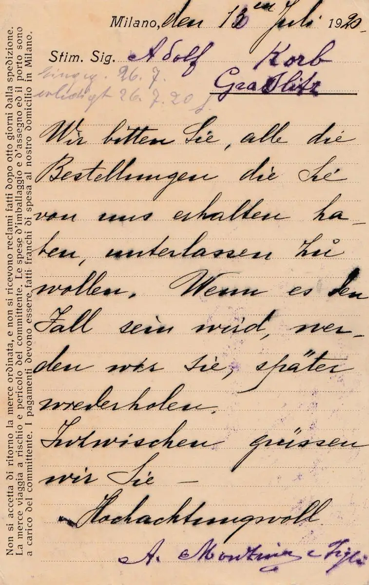 Italien: 1920: Milano Einschreiben nach Böhmen