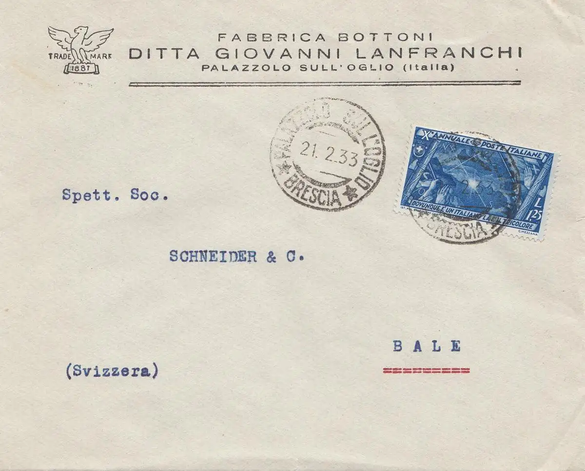 Italien: 1933: Palazzolo Sull Oglio in die Schweiz/Basel