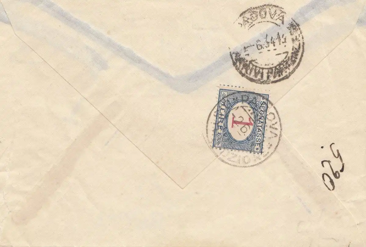 Italien: 1934: Roma nach Padova - Taxe