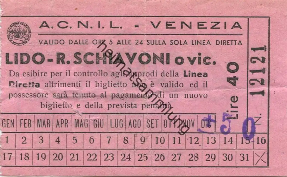 Italien - A.C.N.I.L. Venezia - Fahrschein Lire 50