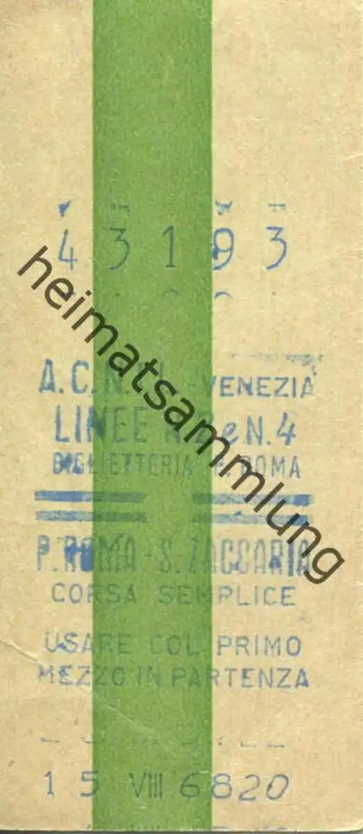 Italien - A.C.N.I.L. - Venezia - Linea N. 2e N. 4 - Fahrschein 1968