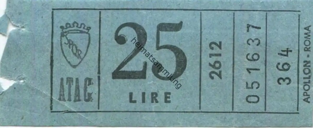 Italien - ATAC - Fahrschein 25 Lire (G58567)