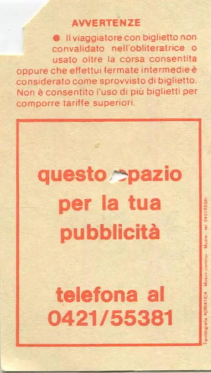 Italien - Cavallino Treporti - Biglietto di corsa semplice da L. 800