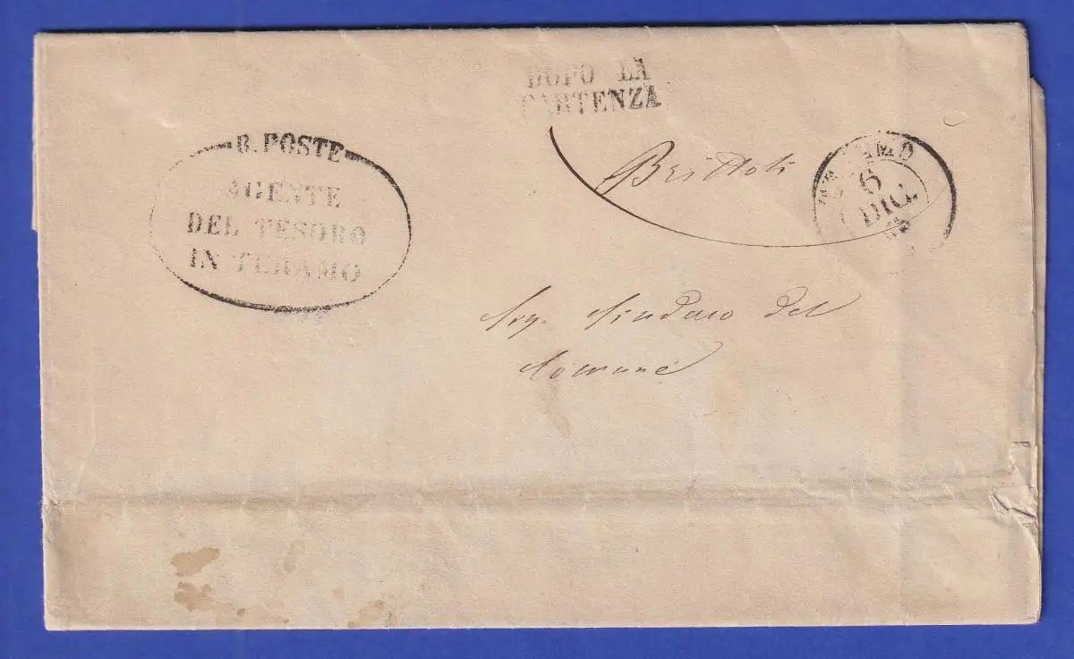 Vorderseitig Ovalstempel B. POSTE AGENTE DEL TESORO IN TERAMO und DOPO LA CARTENZA.