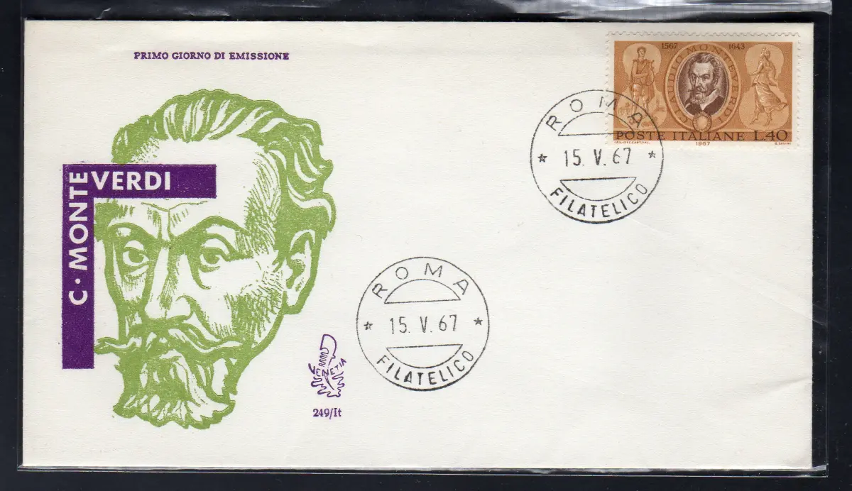 Italien FDC Venetia 1967 Monteverdi nicht gereist Italien 1967 Monteverdi auf Umschlag nicht gereist Annullo Roma Philatelico Cod. 752/Venetia