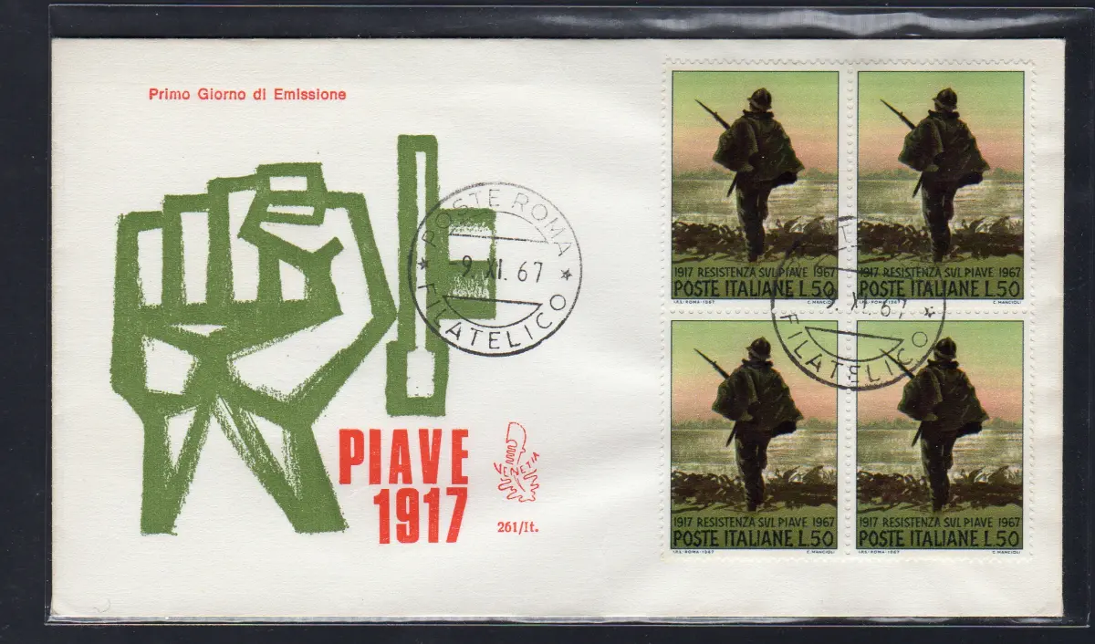 Italien FDC Venetia 1967 Piave quartina nicht gereist Italien 1967 Piave quartina auf nicht gereistem Umschlag Annullo Roma Philatelico Cod. 801/Venetia