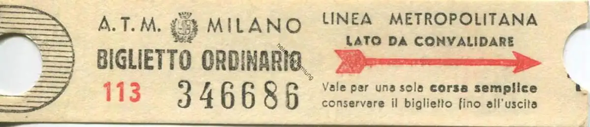 Italien - Italien - A.T.M. Milano - Biglietto Ordinario
