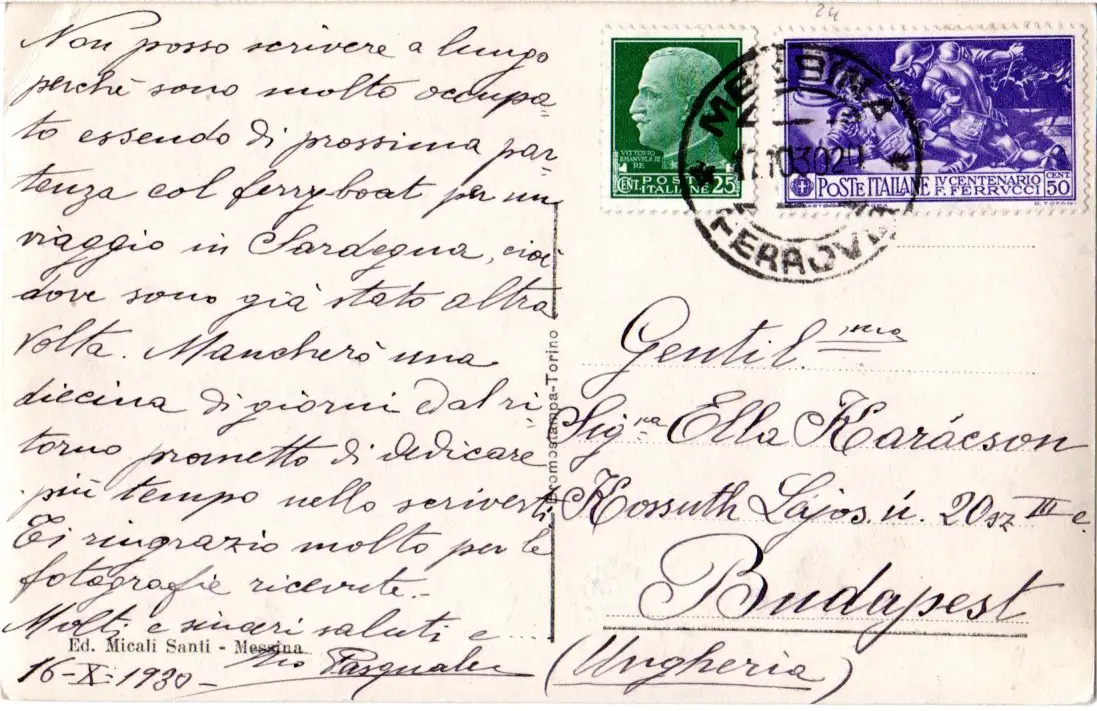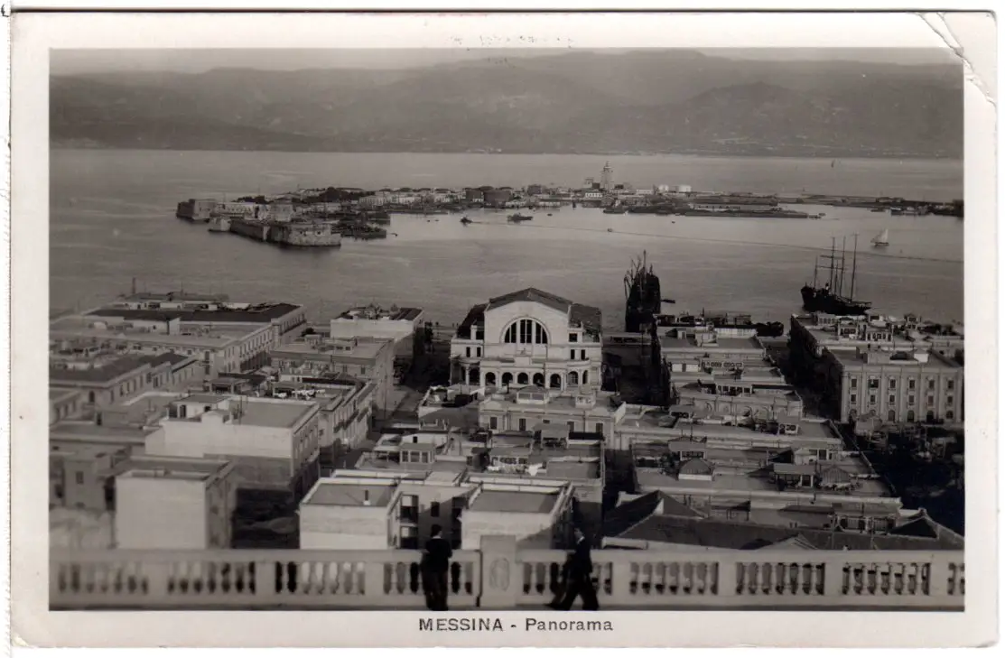 Italien, Messina, Panorama m. Hafen, 1930 gebr. sw-AK